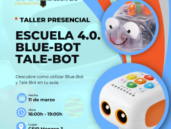 Abierta la inscripción en Doceo de la actividad «Escuela 4.0. Blue-Bot y Tale-Bot.» con el acompañamiento de las mentorías Escuela 4.0 del CP de Monzón. ¡Os esperamos! CEIP Monzón 3 (Monzón) 11 de marzo 16:00h-19:00h. Más información e inscripciones en DOCEO.
