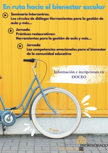 Abierto el periodo de inscripción al seminario intercentros: Las prácticas restaurativas en el centro educativo (Círculos de diálogo) Más información e inscripciones en DOCEO. Las fechas de las sesiones presenciales y el lugar de celebración de las mismas es orientativo, se intentarán adecuar las fechas y las sedes de trabajo a los interes de la …