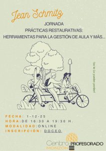 Abierto el periodo de inscripción para la siguiente actividad: Jornadas: Los círculos de diálogo, impacto restaurativo en el centro educativo. Las prácticas restaurativas son una propuesta que pone el acento en la necesidad de crear buenas relaciones entre las personas que forman parte de un grupo. Estás prácticas se han mostrado cómo una buena …