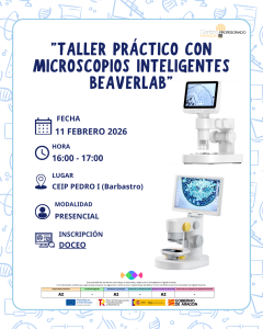 Abierta la 📢inscripción en Doceo de la actividad «Taller práctico con microscopios inteligentes BeaverLAB» donde os vamos a enseñar los nuevos microscopios que hemos adquirido en @cprofmonzon para préstamo. ¡Os esperamos! 📍CEIP PEDRO I (Barbastro) 📅11 de febrero ⌛16:00h-17:00h Más información e inscripciones en DOCEO